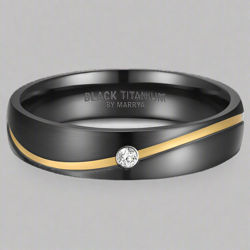 Crafted from black titanium with a refined gold accent, this 4.5mm by 1.8mm ring combines exceptional durability with modern style. Its robust material ensures long-lasting wear, while the sleek design offers a sophisticated look suitable for everyday use or special occasions.