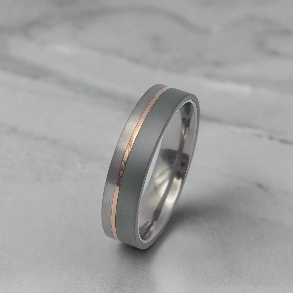 A modern symbol of strength and commitment, this handcrafted Titanium & Tantalum gents wedding ring blends contemporary design with exceptional durability.