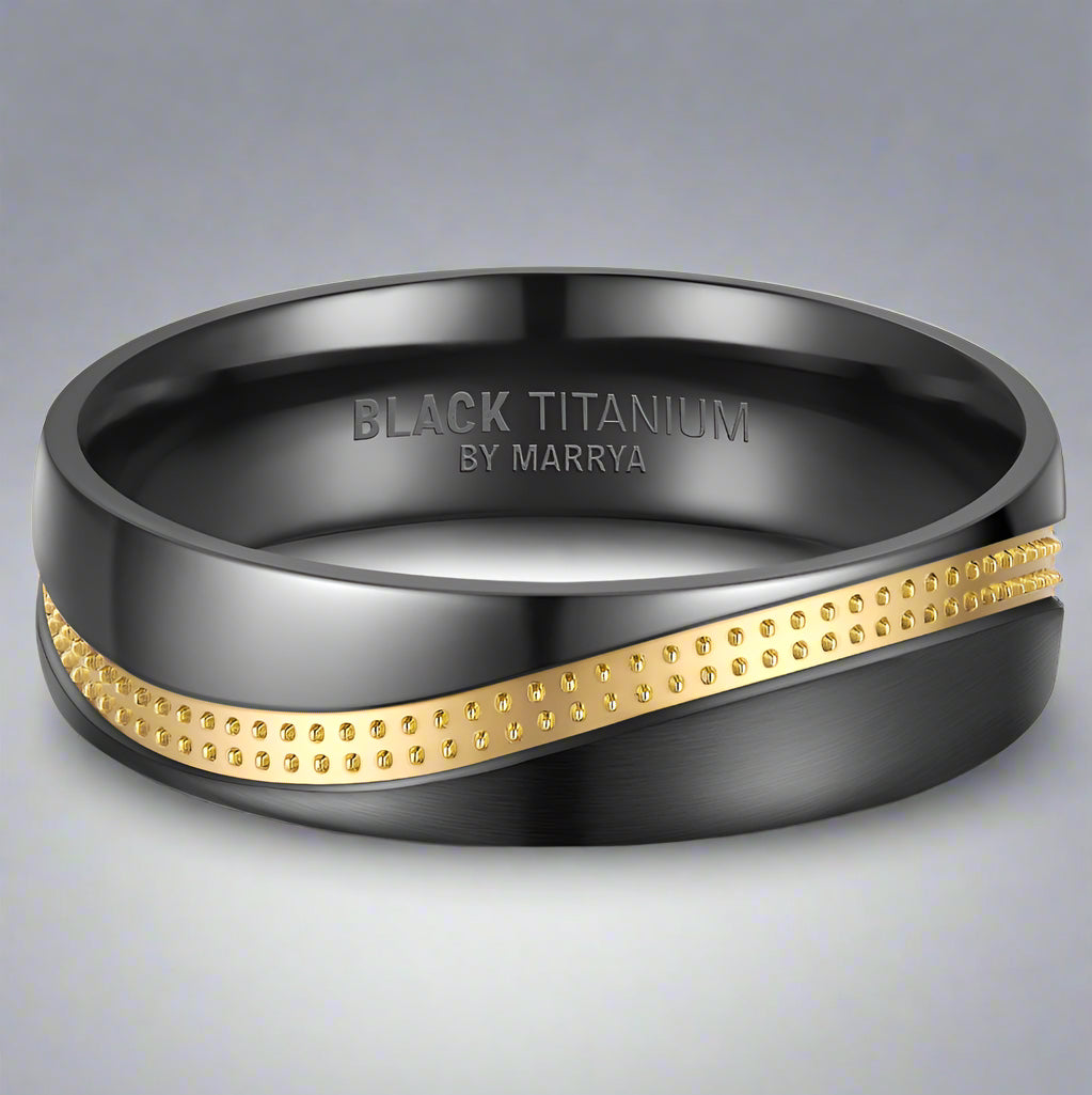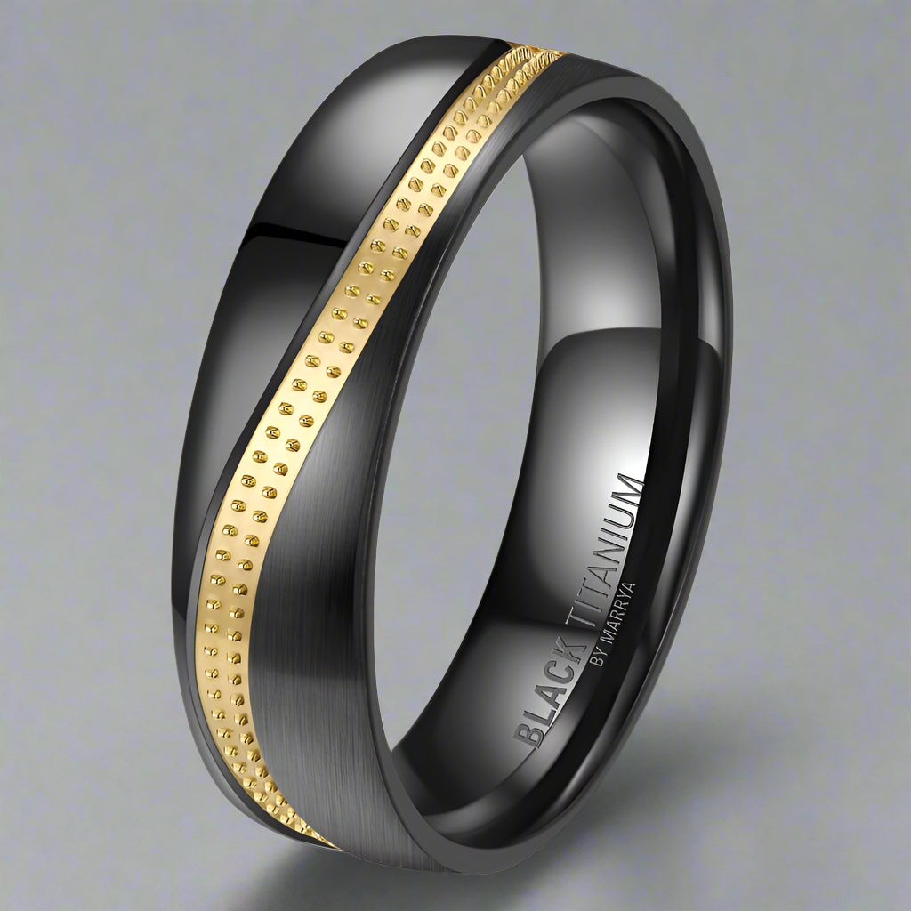 Crafted from durable black titanium, the Obsidian Wave features a contrasting layer of 14ct gold that adds a refined detail to its sleek design.