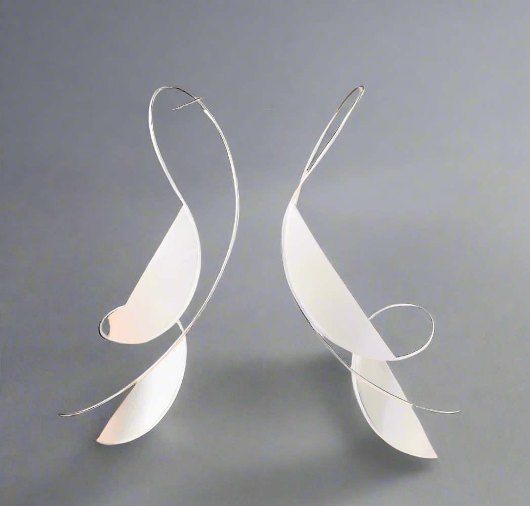 Named the swan earrings as they a reminiscent of the grace and elegance of a swans neck leading down to the feathers