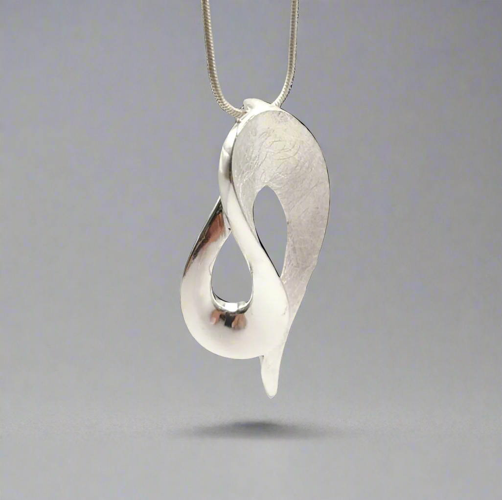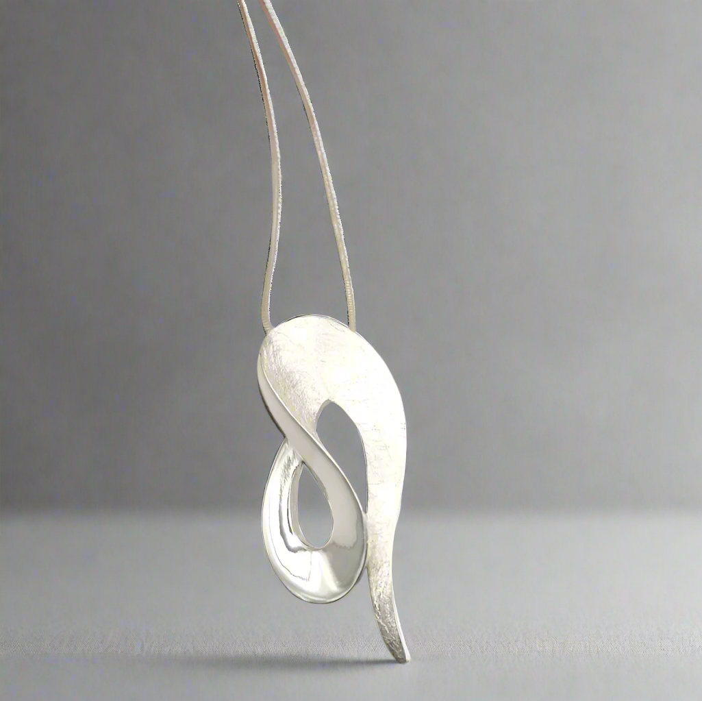 This graceful silver pendant is called Dancer because it beautifully captures the essence and fluidity of the art form. With its contrasting high polished and brushed finishes it is elegantly eyecatching and the perfect gift for any dancer or lover of the arts.